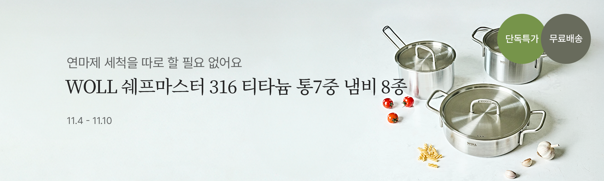 ![[첫 런칭] WOLL 쉐프마스터 316 티타늄 통7중 냄비 8종 (택 1)](https://static.wtable.co.kr/image/production/service/product/54456/d7c8d893-bc8b-4aaa-bb55-4a1c377c291b.jpg?size=500x500)