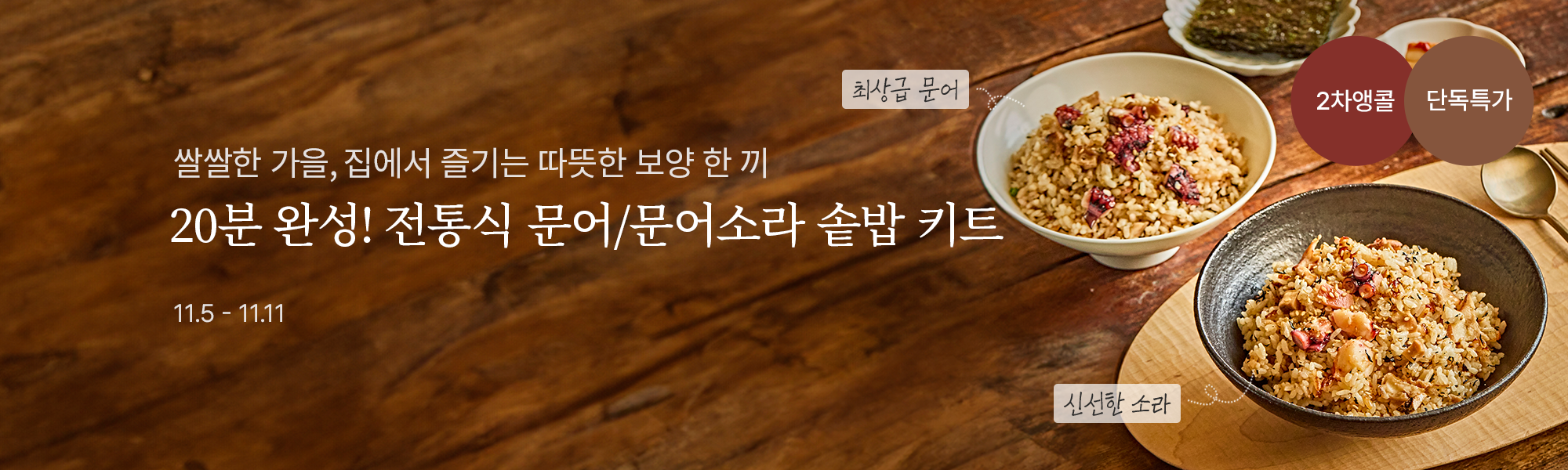 ![[단독특가] 단 20분만에 완성하는 전통식 문어/문어소라 솥밥 키트](https://static.wtable.co.kr/image/production/service/product/52462/f54c09f5-2f30-4797-a12a-32c14ac80956.jpg?size=500x500)