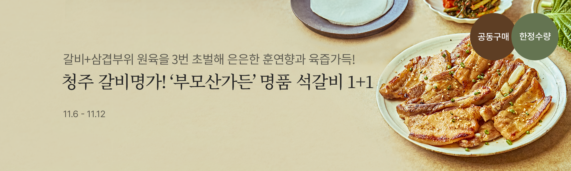 ![[공동구매] 청주 3대 명가! '부모산가든' 전통 석갈비 단독최저가](https://static.wtable.co.kr/image/production/service/product/53792/01038494-8083-40fb-8f7f-86826ae1ccfd.jpg?size=500x500)