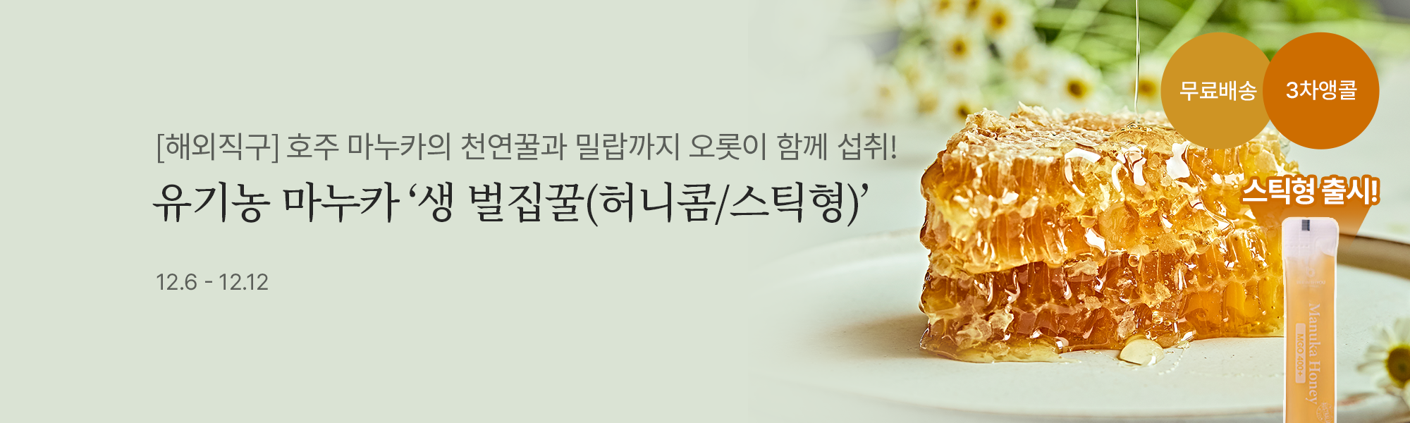 ![[연말특가] 호주직송! 신선한 ‘유기농 마누카 100% 생 벌집꿀‘(라운드 허니콤/스틱형)](https://static.wtable.co.kr/image/production/service/product/49030/f2457d80-9c88-4e88-bed5-17152a520c3f.jpg?size=500x500)