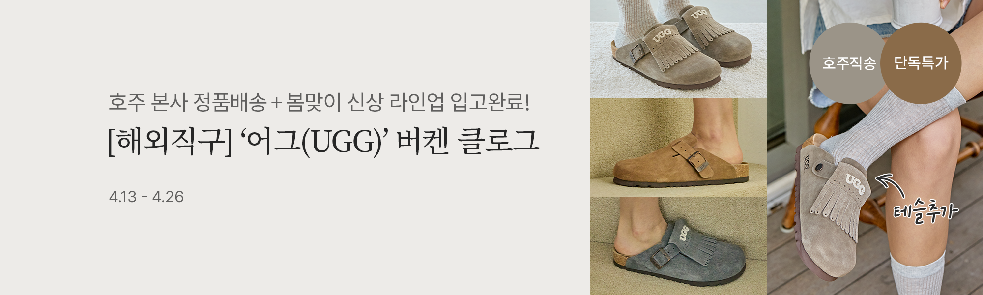 ![[해외직구] 호주정품! 2026 봄신상 ‘어그‘(UGG) 버켄 클로그 단독특가전 (옵션선택)](https://static.wtable.co.kr/image/production/service/product/58083/e2f1baf2-6f74-474d-b40b-11072addbe57.jpg?size=500x500)