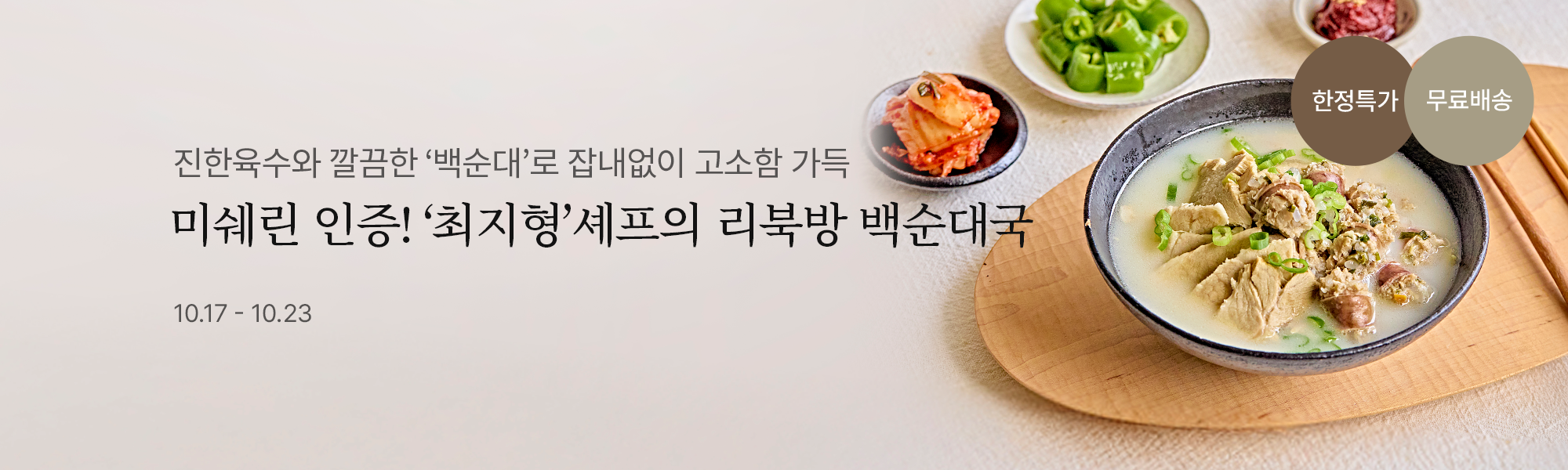 ![[공동구매] 미쉐린 인증! '최지형'셰프의 '리북방 백순대국' (4팩/7팩)](https://static.wtable.co.kr/image/production/service/product/49921/cd0112f5-5ba7-4a0a-ac53-c95abffa4fe2.jpg?size=500x500)
