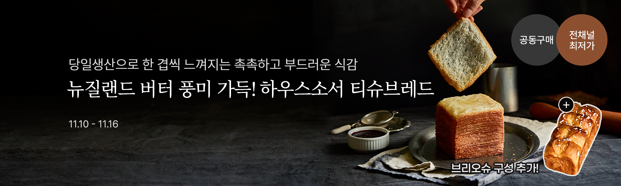 ![[공동구매] 버터 풍미가득! 당일제조 하우스소서 티슈브레드&브리오슈](https://static.wtable.co.kr/image/production/service/product/43148/62ee1107-1d52-4ee5-8b66-fcebf93c1664.jpg?size=500x500)