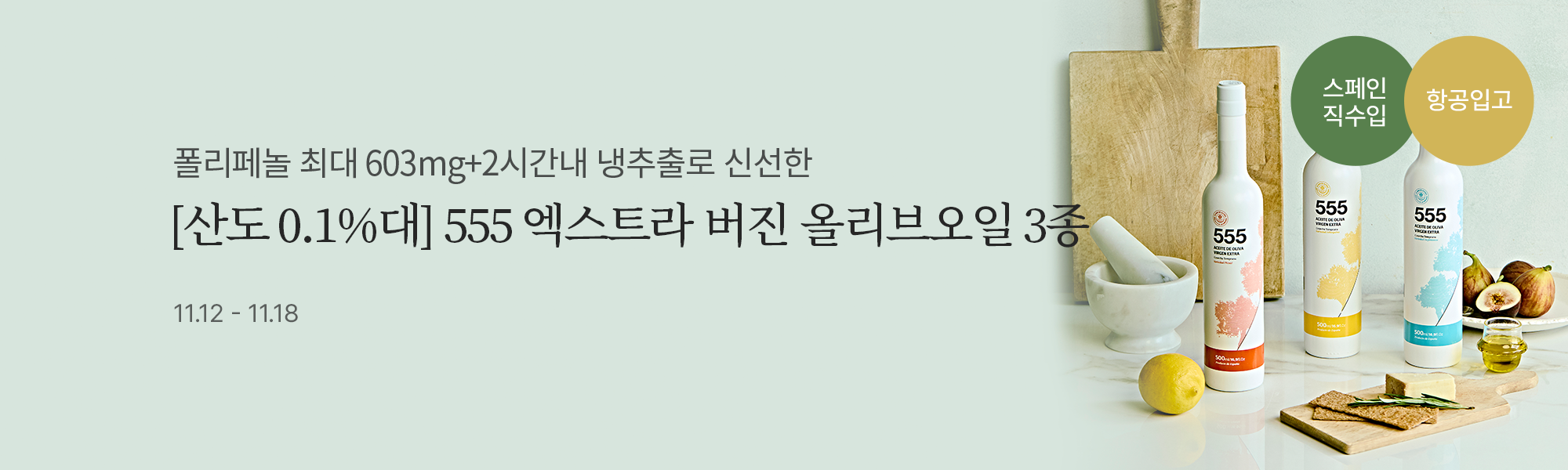 ![[항공입고] 산도 0.1%대! 555 엑스트라 버진 ‘햇’ 올리브오일 500ml 3종](https://static.wtable.co.kr/image/production/service/product/52322/cd599946-c0e3-4338-9414-5474cde0fff3.jpg?size=500x500)