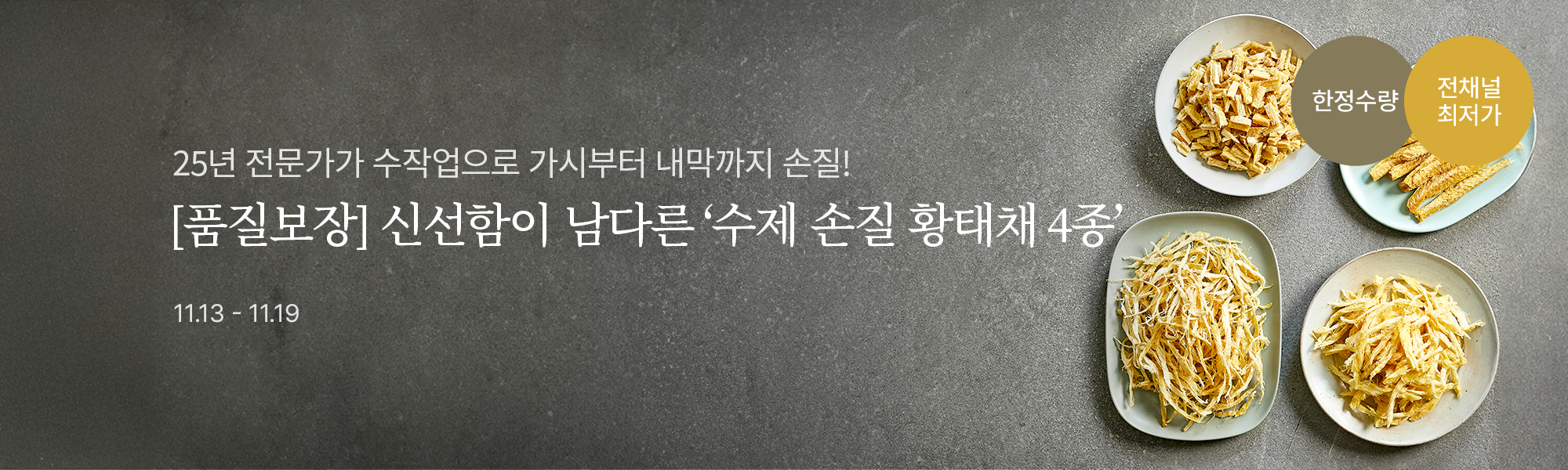 ![[6차앵콜] 수작업으로 손질한 프리미엄 황태채 4종](https://static.wtable.co.kr/image/production/service/product/39933/cf384971-dc12-4cd6-9aec-bc203da051fe.jpg?size=500x500)