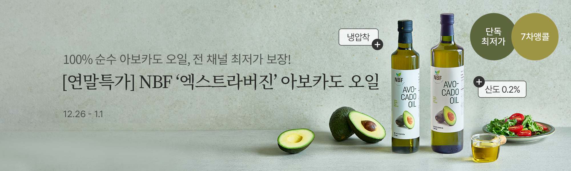 ![[연말특가] 산도 0.2! 냉압착 생산된 NBF 엑스트라버진 아보카도 오일 1+1병 (총 1L)](https://static.wtable.co.kr/image/production/service/product/42764/0d70e875-2d84-4888-b8db-8f882505c20f.jpg?size=500x500)