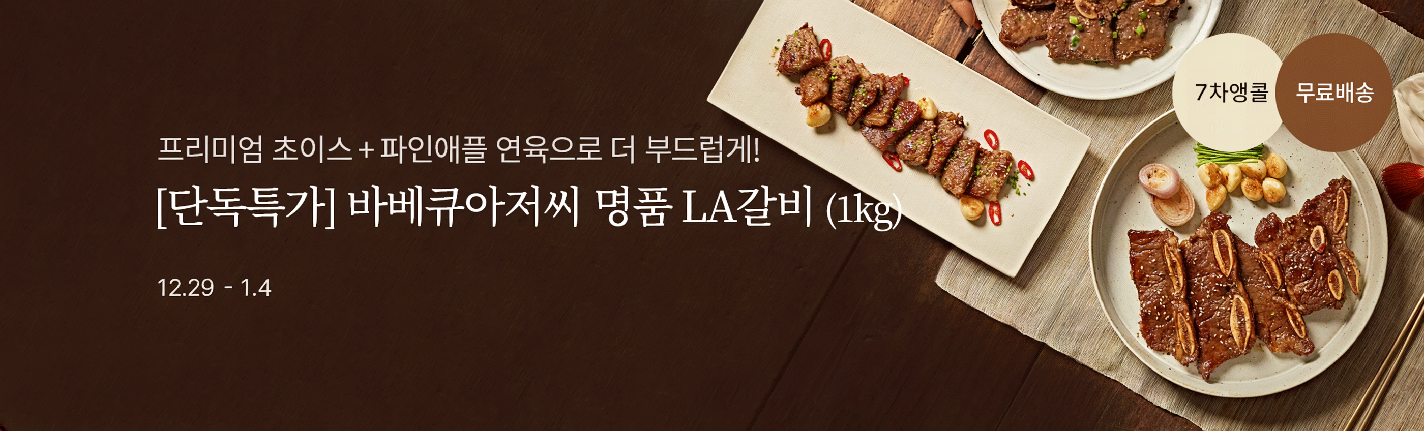 ![[연말특가] 평점 4.7점! 초이스등급 명품 양념숙성 '바베큐아저씨' LA갈비 (1kg/750g)](https://static.wtable.co.kr/image/production/service/product/35827/1995e036-6ad7-4269-8863-cf3cfcaea8de.jpg?size=500x500)