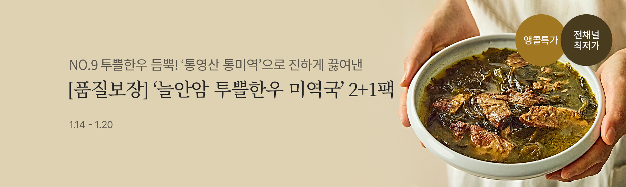 ![[앵콜특가] 녹진한 부드러움! 늘안암 한우투쁠 미역국 (1팩/3팩/5팩)](https://static.wtable.co.kr/image/production/service/product/54594/f5c1d1f5-35ee-4508-8469-088ddae46607.jpg?size=500x500)