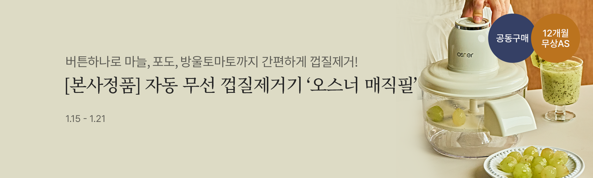 ![[공동구매] 무선 자동 껍질제거기! 오스너 매직필 (화이트/블루)](https://static.wtable.co.kr/image/production/service/product/55780/ab7b9e85-4eb3-42f5-9abf-9f3217def4fd.jpg?size=500x500)