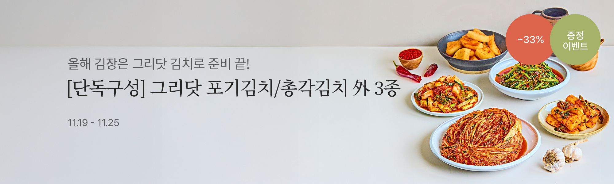 ![[우리의식탁 only] 100% 국내산, 그리닷 포기김치/총각김치 外 3종](https://static.wtable.co.kr/image/production/service/product/46811/68f0fc5b-79aa-4448-9656-09a6db4aa051.jpg?size=500x500)