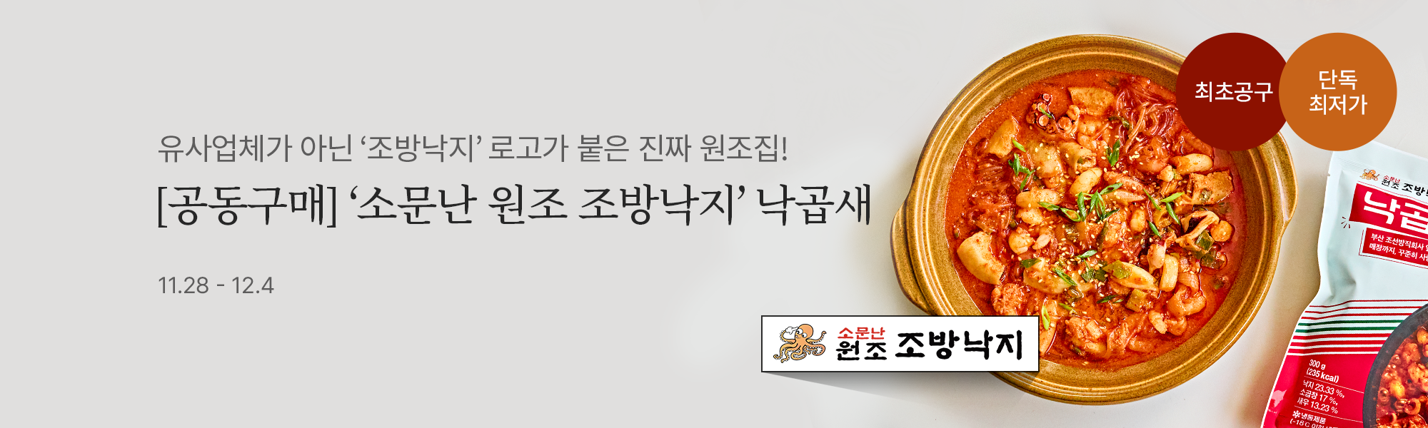 ![[최초공구] 46년 전통 부산맛집! 소문난 원조 조방낙지 낙곱새 밀키트 (2인)](https://static.wtable.co.kr/image/production/service/product/54878/e706d82f-3559-44f3-b0f4-96a5d95692c2.jpg?size=500x500)