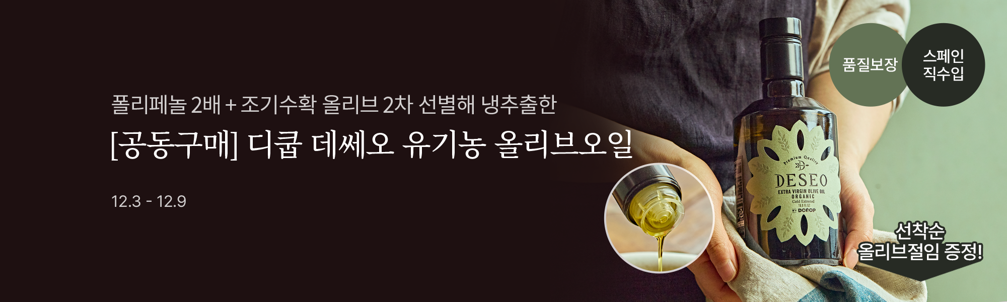 ![[공동구매] 산도 0.17% 단일품종 '디쿱 데쎄오 유기농 엑스트라버진'](https://static.wtable.co.kr/image/production/service/product/52722/719e4e59-7d81-4915-88f1-d84ab48f12b0.jpg?size=500x500)