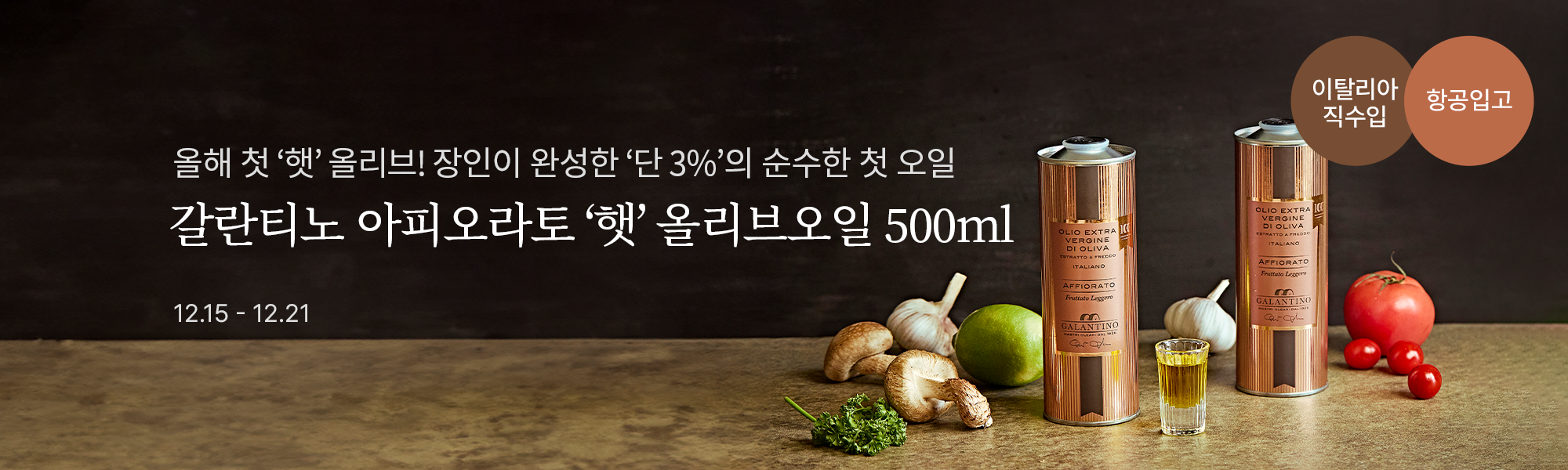 ![[25년 햇 올리브] 갈란티노 아피오라토 '햇' 올리브오일 (500ml) + 사은품 증정](https://static.wtable.co.kr/image/production/service/product/53964/d1a248ea-cb04-4bd3-ab2c-e9665c7ec995.jpg?size=500x500)