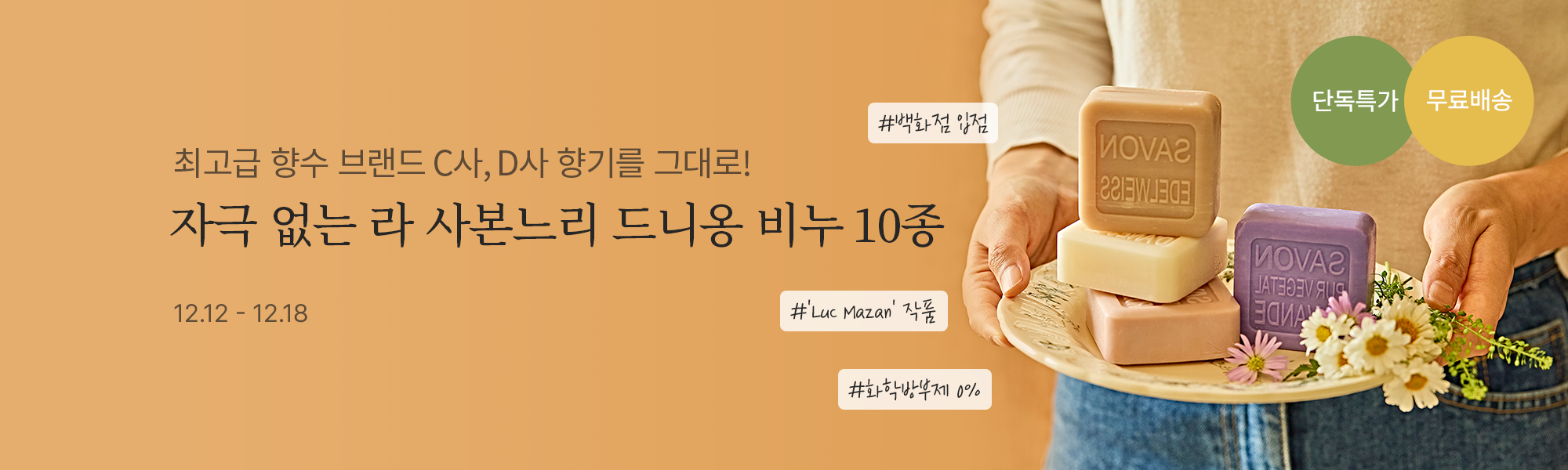 ![[프랑스직수입] 천연 오일로 만든 '라 사본느리 드니옹' 비누 10종 세트](https://static.wtable.co.kr/image/production/service/product/55042/bab69c64-ac58-41bd-8bc4-6a197a2ddeb6.jpg?size=500x500)