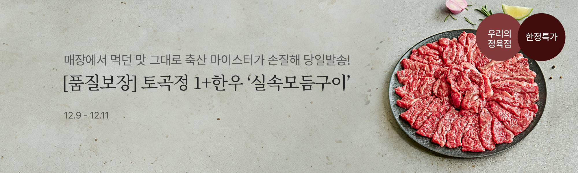 ![[한정특가] 토곡정 냉장 한돈&한우 골라담기 (1+한우 '실속모듬구이, 불고깃감 / 한돈 찌개용 정육)](https://static.wtable.co.kr/image/production/service/product/52399/cb4ff44d-8ef9-4656-88d5-513a42de3fd7.jpg?size=500x500)