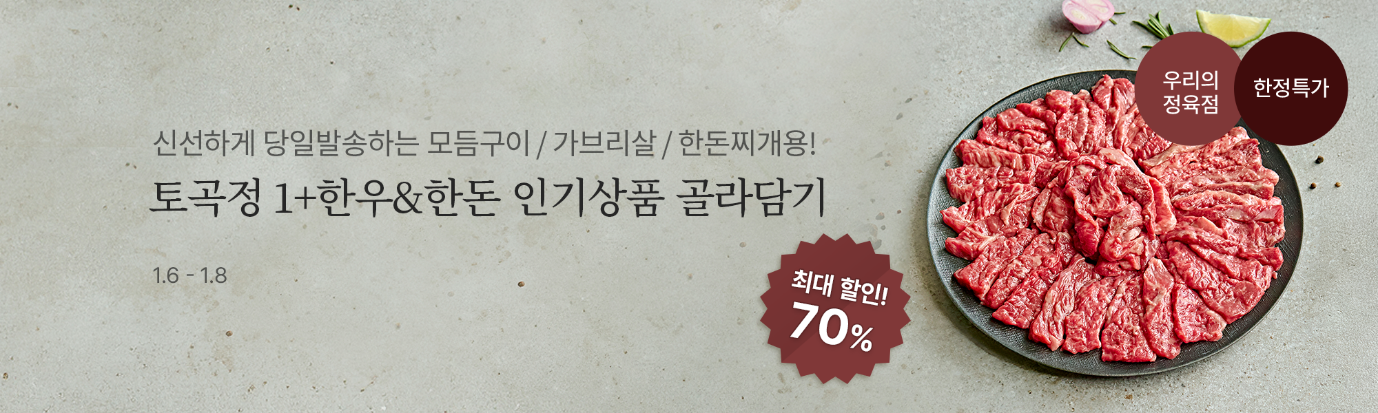 ![[한정특가] 토곡정 냉장 한돈&한우 골라담기 (1+한우 '실속모듬구이/한돈 가브리살, 찌개용)](https://static.wtable.co.kr/image/production/service/product/52399/9cc7e8bc-3b27-4aae-881a-950b1f0df7b6.jpg?size=500x500)
