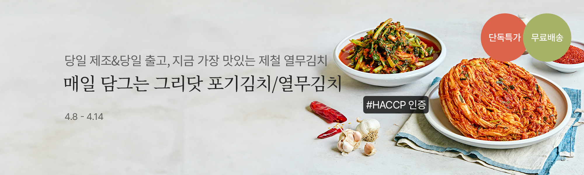 [단독선런칭] 100% 국내산 재료로 매일 담그는 '그리닷' 포기김치/열무김치