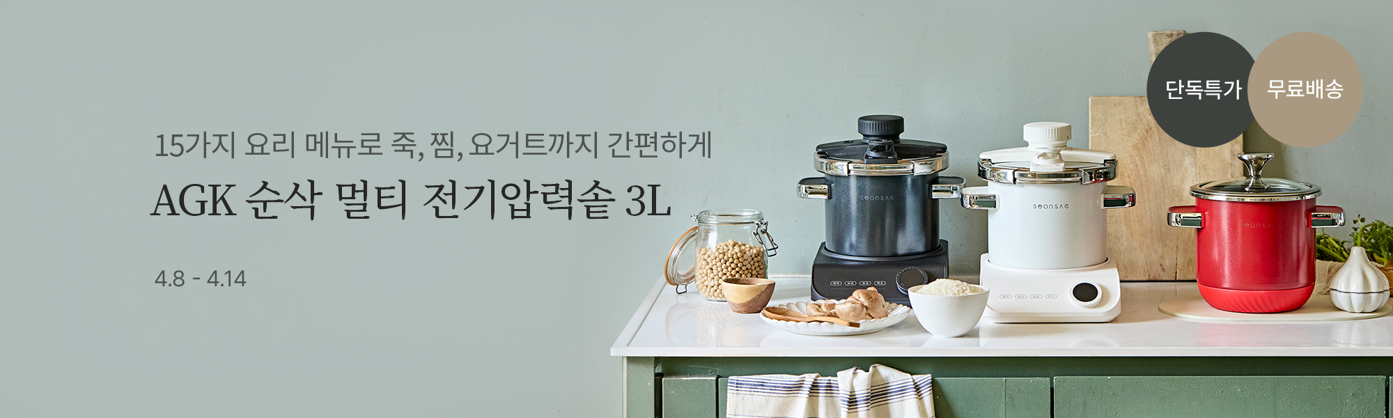 ![[공동구매] 불 조절 없이 버튼 하나로 요리 끝! AGK 순삭 멀티 전기압력솥 3L](https://static.wtable.co.kr/image/production/service/product/57700/0a5d5b7d-cf82-4860-a081-d87ed278dfb7.jpg?size=500x500)