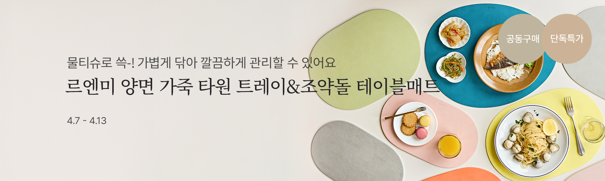 ![[공동구매] 르엔미 양면 가죽 타원 트레이&조약돌 테이블매트](https://static.wtable.co.kr/image/production/service/product/57835/dc03df7d-e068-4fb2-b0cb-da9a2a37b572.jpg?size=500x500)