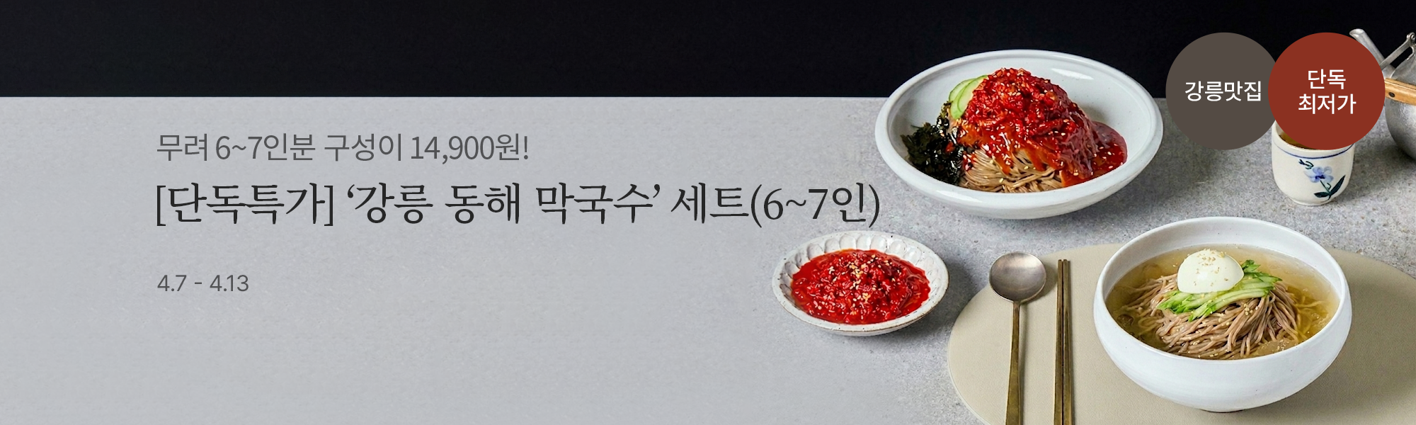 ![[단독특가] 40년 전통의 맛, 새콤달콤 구수한 강릉맛집 ‘동해 막국수’ 세트(6~7인)](https://static.wtable.co.kr/image/production/service/product/52542/bbe802f0-7cdf-4947-89c4-0c79dbcf68c1.jpg?size=500x500)