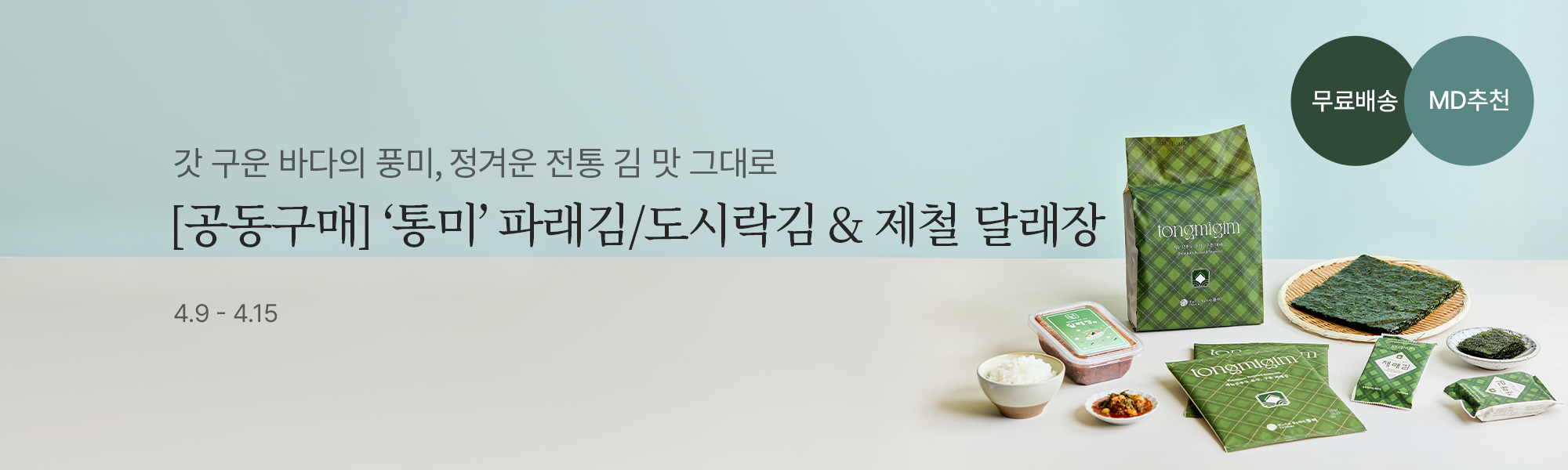 ![[공동구매] 국내산 원초 100%! 두 번 구워 더 바삭한 '통미' 김&달래장](https://static.wtable.co.kr/image/production/service/product/57818/9ef699e5-34fc-45b7-b84b-2292446cbc2d.jpg?size=500x500)