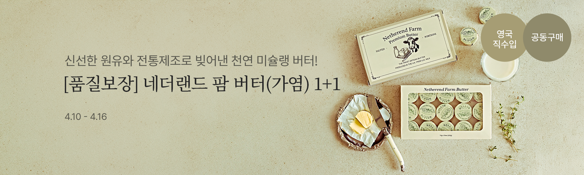 ![[공동구매] 미슐랭 버터! 네더랜드 팜 버터 1+1 (총 2팩 /팩당15g x 15개입)](https://static.wtable.co.kr/image/production/service/product/49035/2918ea25-0638-49f6-a23e-3234fe50b0ac.jpg?size=500x500)