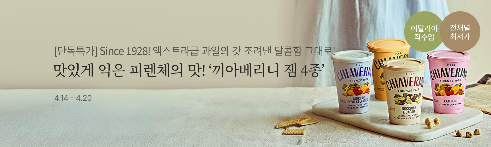 ![[한정특가] 엑스트라급 원물 사용! 끼아베리니 과일잼 4종](https://static.wtable.co.kr/image/production/service/product/49288/5ec127fe-7118-4a20-8e9a-ed40f71bfe8f.jpg?size=500x500)