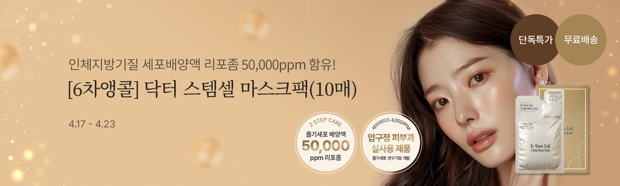 ![[6차앵콜] 줄기세포 배양액 50,000ppm 함유! '닥터 스템셀 투스텝 마스크팩'(10개입)](https://static.wtable.co.kr/image/production/service/product/58323/c458d111-2ed6-4dc1-aff1-3627e46f12bf.jpg?size=500x500)