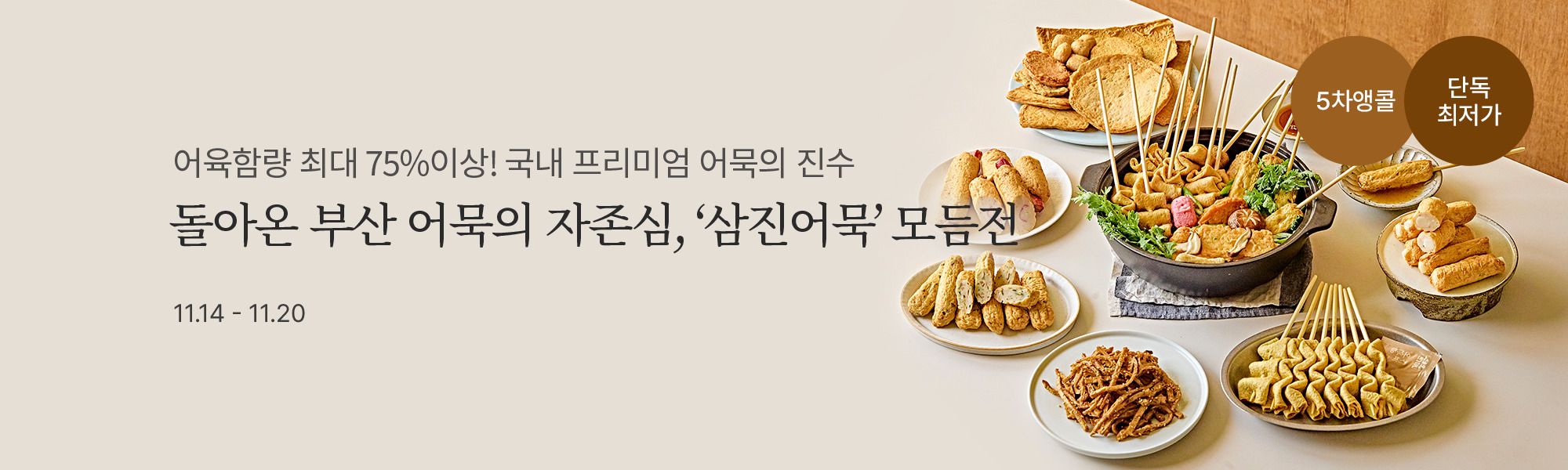 ![[단독특가] SINCE 1953, 부산 어묵의 자존심, '삼진어묵' 모듬어묵/반찬용/말이어묵 (냉장)](https://static.wtable.co.kr/image/production/service/product/43377/244f8e61-29f8-433c-a973-1ce1989852a7.jpg?size=500x500)