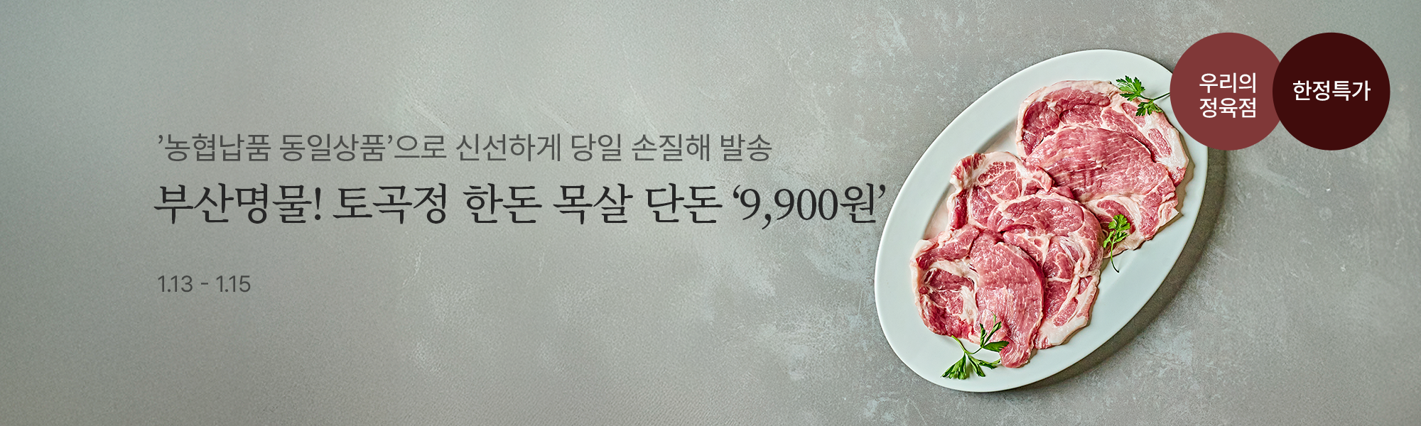 ![[한정특가] 토곡정 '냉장' 한돈&한우 골라담기 (1+한우 등심/한돈 목살, 찌개용)](https://static.wtable.co.kr/image/production/service/product/52399/69dccf7a-f900-4509-a2d7-89f0d816895a.jpg?size=500x500)