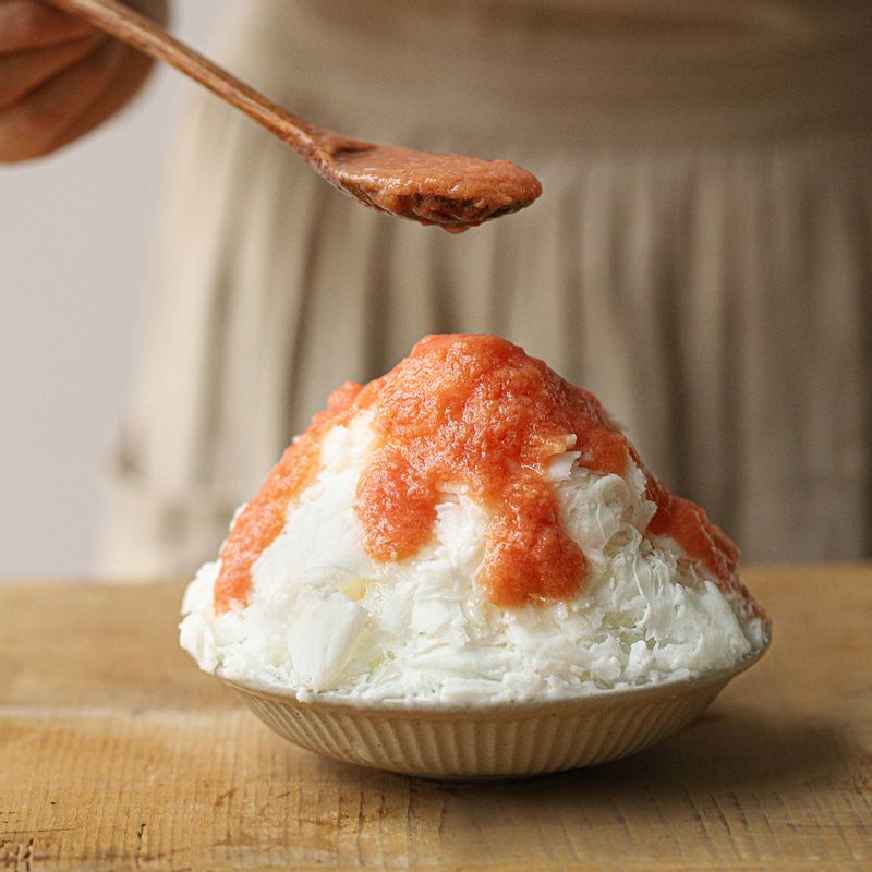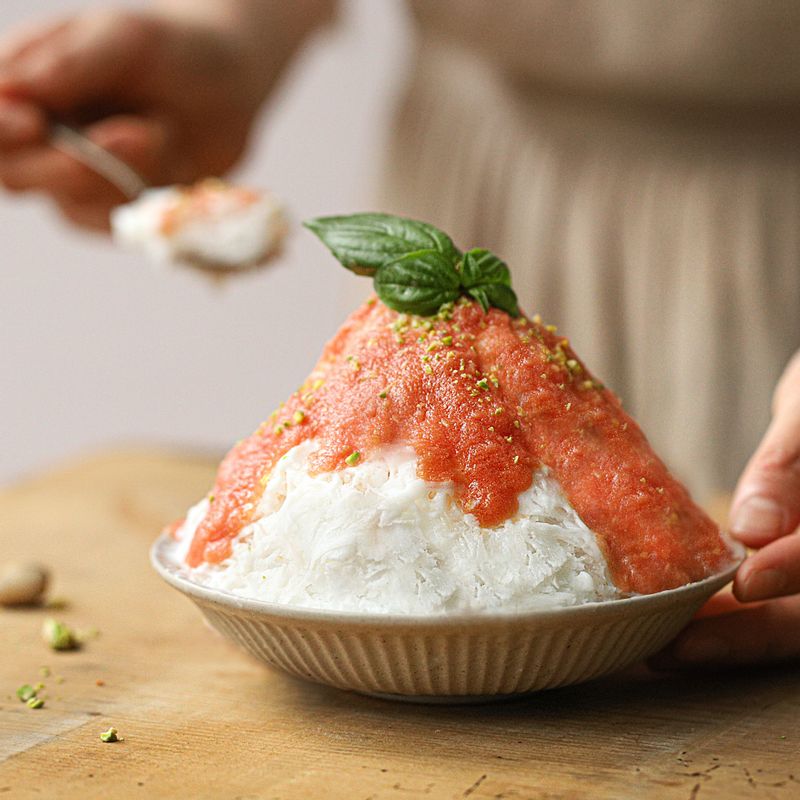 빙수와 불은 절대 만날 수 없는 사이죠. 차가운 얼음에 산뜻한 토마토 퓌레를 올린 토마토 빙수를 만들어 보세요. 갑자기 음악이 떠오르네요. 빙수야~ 토마토 빙수야~ 녹지마 녹지마