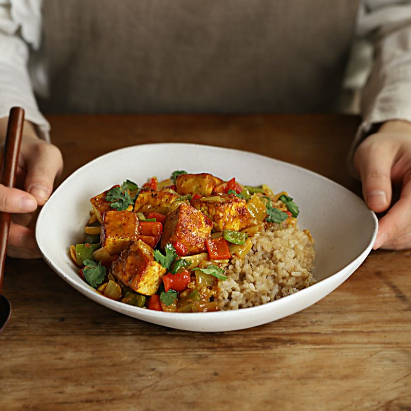 건강한 재료 카레에 두부를 더해 한층 더 건강하고 맛있는 한 그릇 음식을 만들었어요. 두부의 부드러운 식감과 뭉근하게 끓인 카레의 깊은 맛이 정말 잘 어울린답니다.