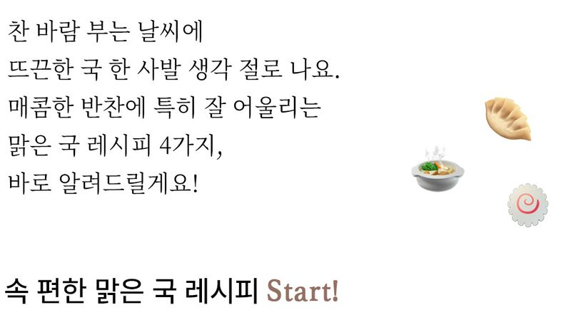 감칠맛이 느껴지는 국물이 촉촉하게 밴 만두 한 입, 국물 한 입이면 추운 날씨도 잊을 만큼 속이 따뜻해질 거예요~ 📝TIP 1. 기호에 따라 사골 육수를 사용해도 좋아요. 📝TIP 2. 고명으로 김가루 또는 지단, 실파를 곁들여 마무리해 주세요.