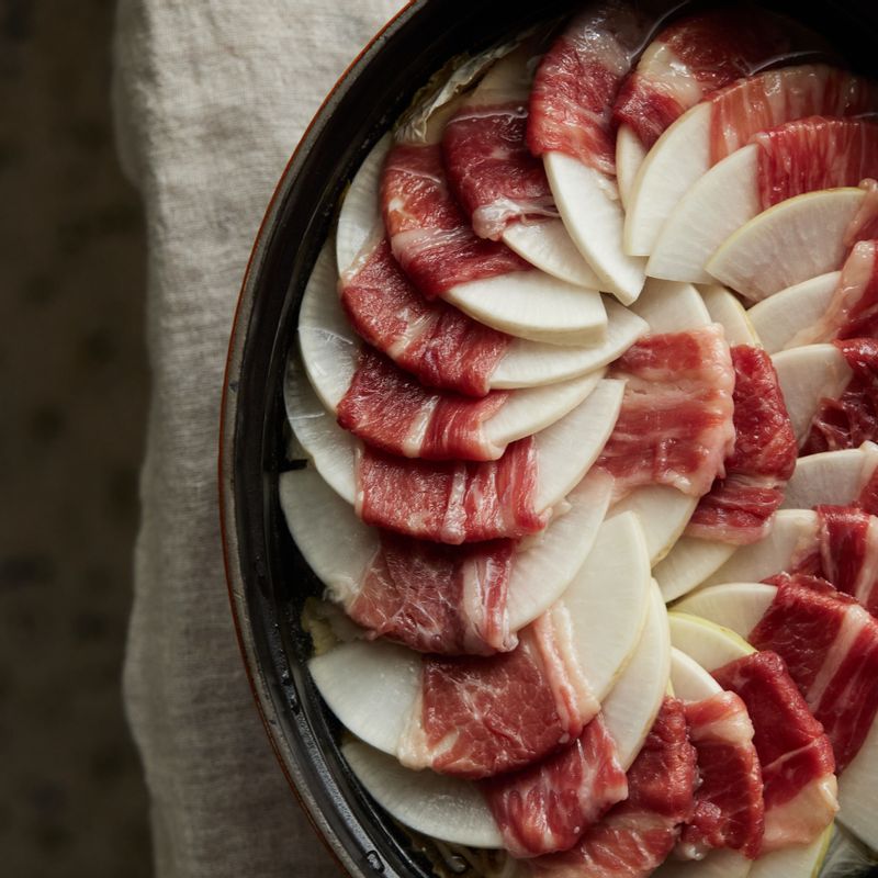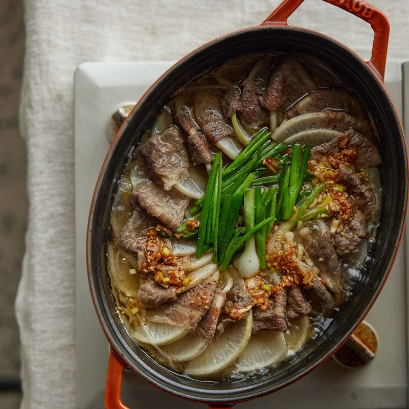 찬바람 부는 날, 따뜻한 국물에 무와 차돌박이를 더해 감칠맛을 극대화한 전골 어떠세요? 달큰한 무와 고소한 차돌박이 풍미의 조화가 정말 예술인 요리가 탄생할 거예요.