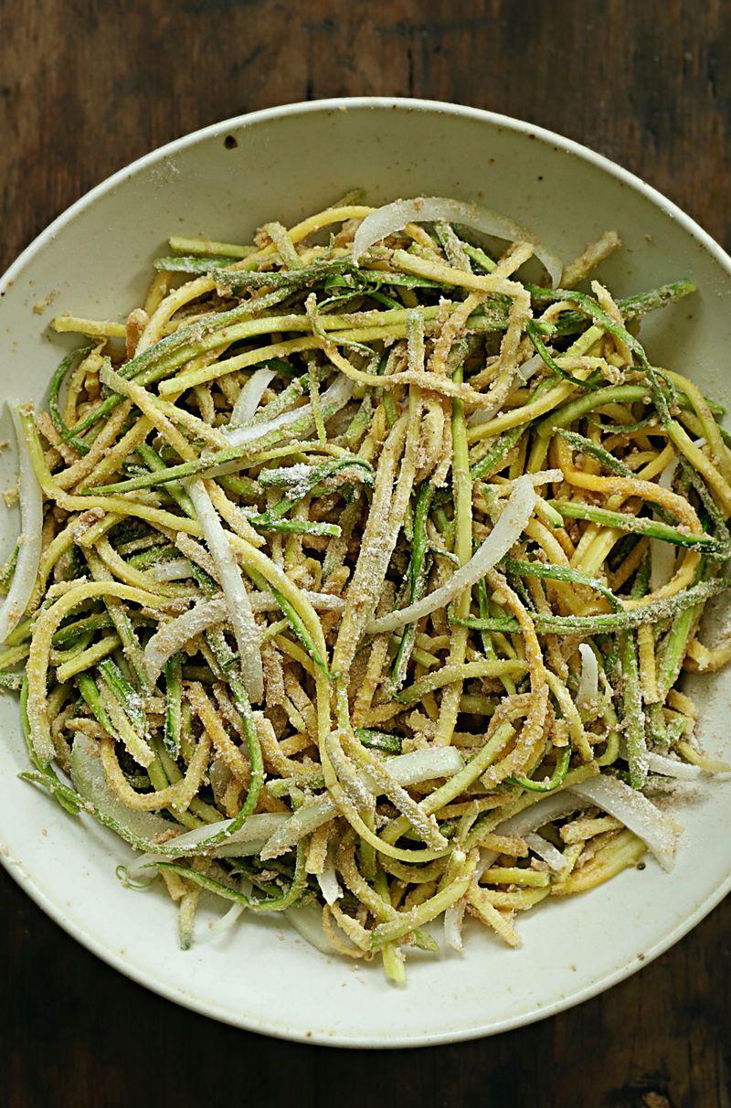 다른 재료 필요 없이 딱 애호박 하나만 준비하세요! 애호박을 얇게 채 썰고 통밀가루를 묻혀 담백하게 구워내면 끝나는 초간단 맛보장 레시피랍니다.