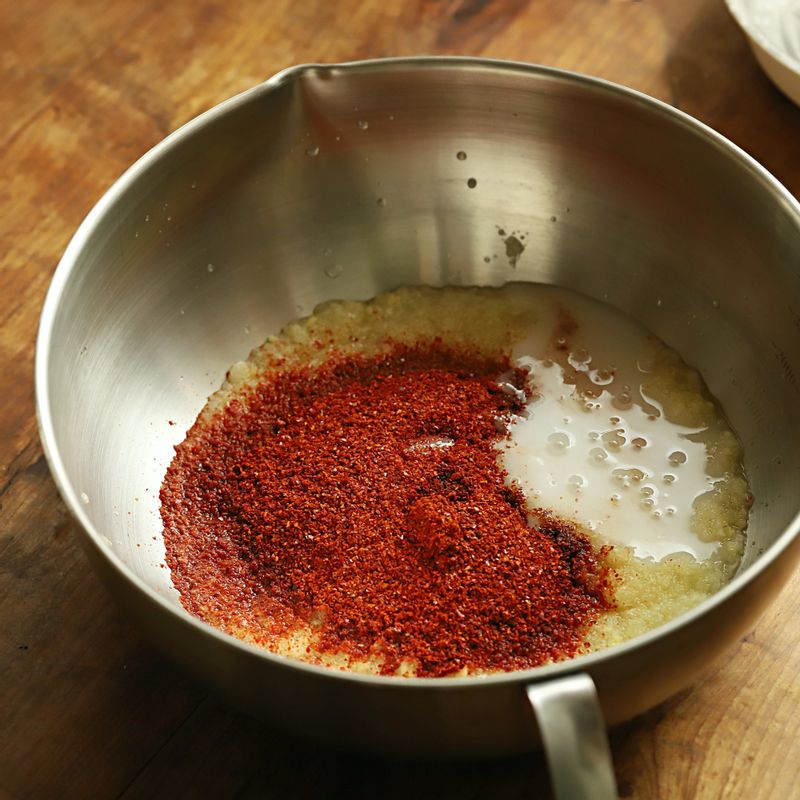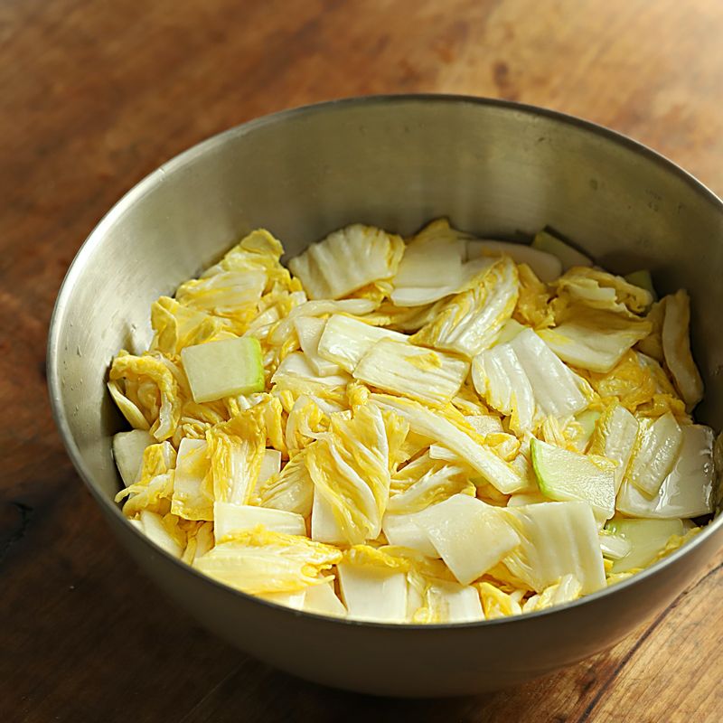 📝TIP 1. 배추의 심지는 얇게 썰어 함께 절여주세요. 📝TIP 2. 찹쌀가루에 다시마 물을 넣고 끈적한 농도가 될 때까지 저어가면서 끓여 찹쌀 풀을 만들어 주세요. 📝TIP 3. 절인 배추는 손으로 가볍게 물기를 짜낸 후, 김치 양념에 버무려 주세요.