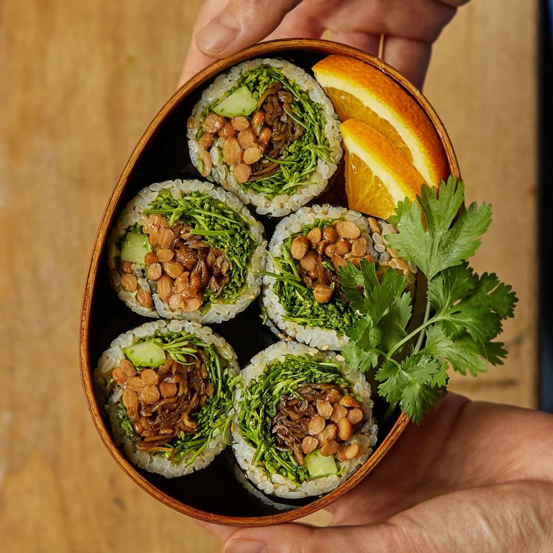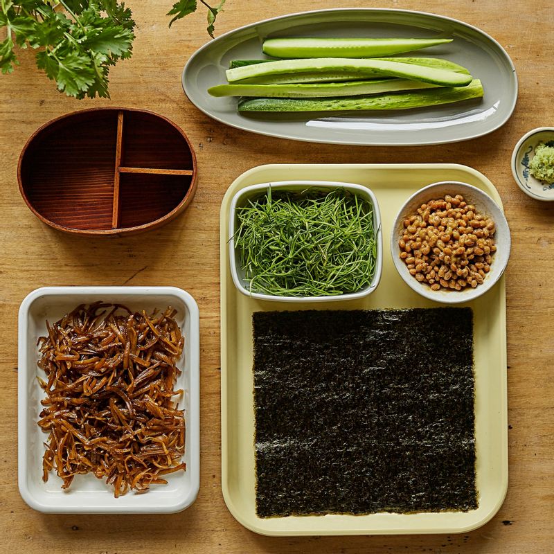 세계 5대 건강식품 낫또로 만드는 한 입 쏙 김밥! 쭉- 늘어나 항상 불편했던 낫또도 깔끔하게 먹을 수 있을 거예요. 혈행 개선은 물론 유익균도 풍부한 낫또에 오이와 나물까지 듬뿍 넣어 더 신선하고 건강하게 즐겨보세요!