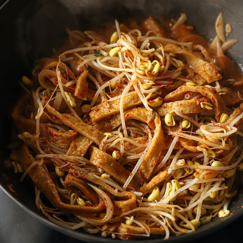 보통은 해산물이 잔뜩 들어간 찜 요리를 생각하게 되지만, 집에서 해물 없이도 맛있는 콩나물찜 충분히 만들 수 있어요! 아삭한 콩나물과 부드러운 어묵에 매콤한 소스를 넣고 보글보글 끓여보세요.