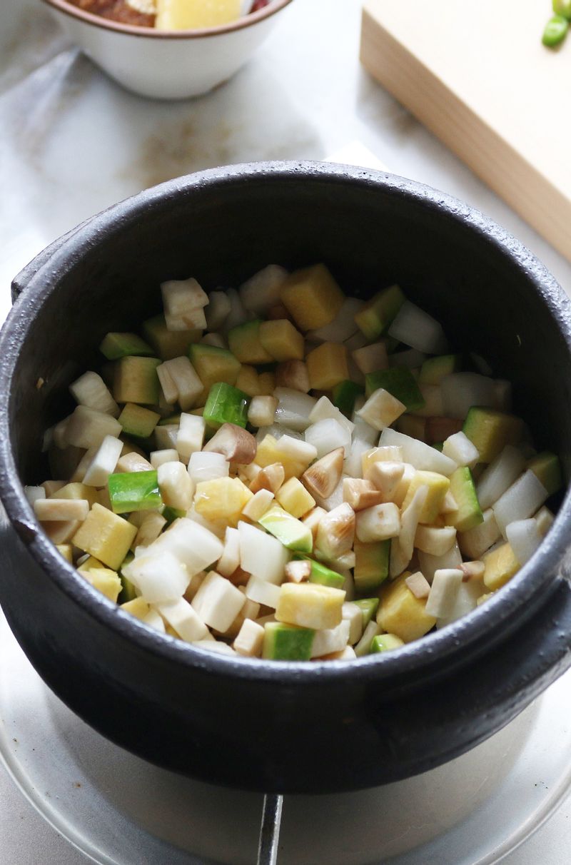 짭조름한 강된장 양념에 밥을 쓱쓱 비비기만 해도 침이 꼴깍! 밥도둑이 따로 없어요! 📝TIP 1. 기호에 따라 찐 호박잎이나 쌈 채소를 곁들여 먹어도 좋아요.