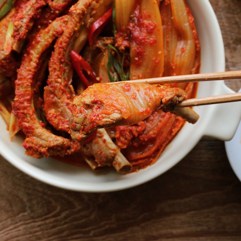 확실히 입맛을 살려주는 매콤 칼칼한 요리가 생각나는 날, 이만한 게 없어요. 누구나 좋아할 수밖에 없는 돼지등갈비 김치찜! 푹 끓여 낸 김치 한 입, 보들보들한 등갈비 한 입 먹으면 뭐 하나 부족함 없이 만족스러운 한 끼가 될 거예요~