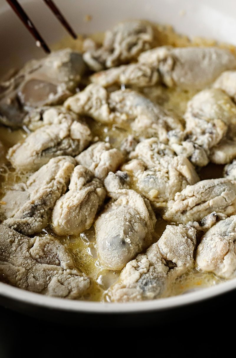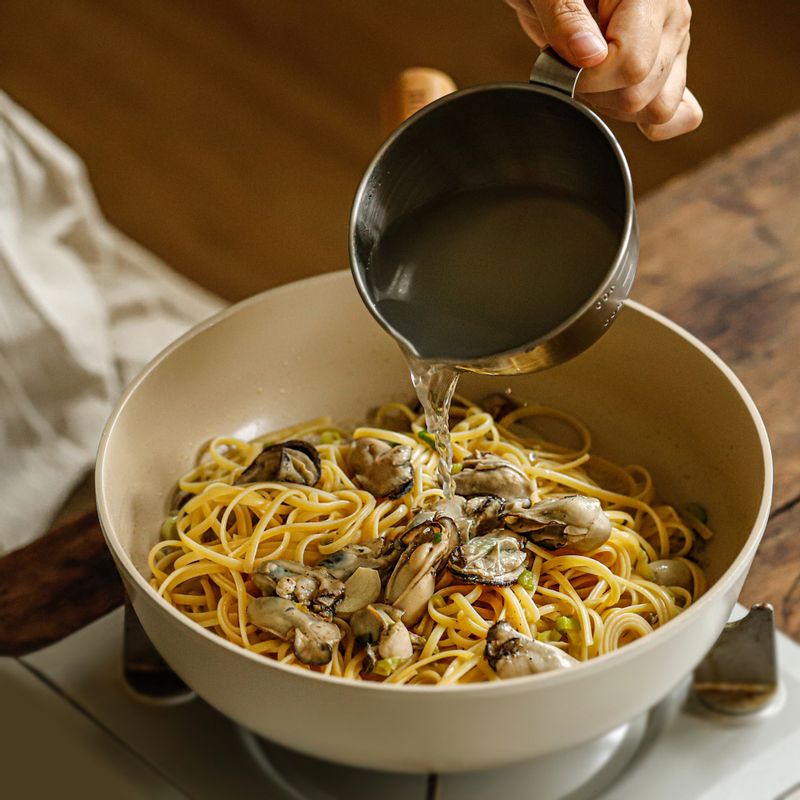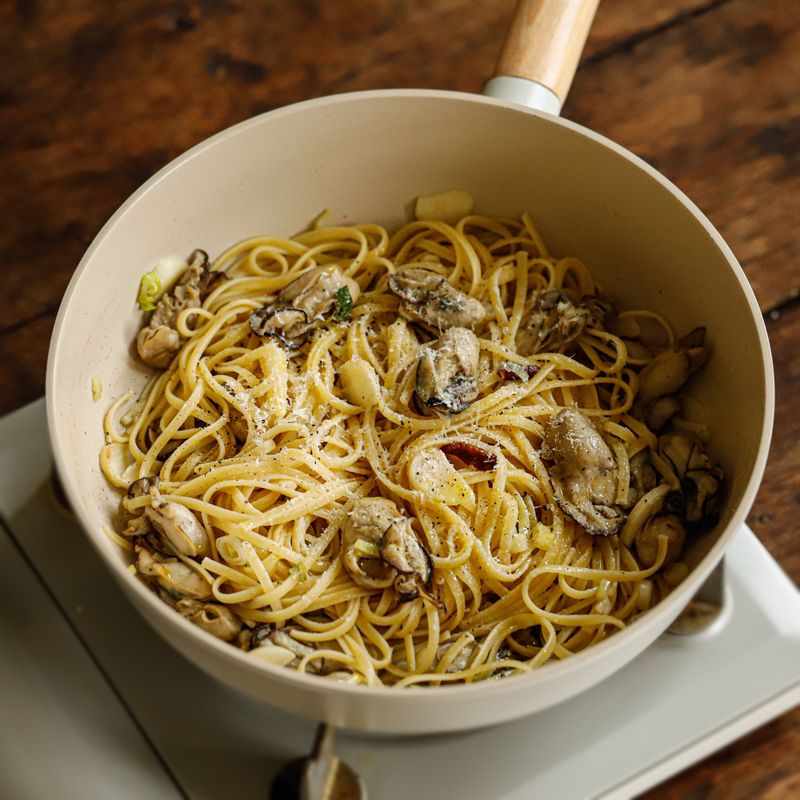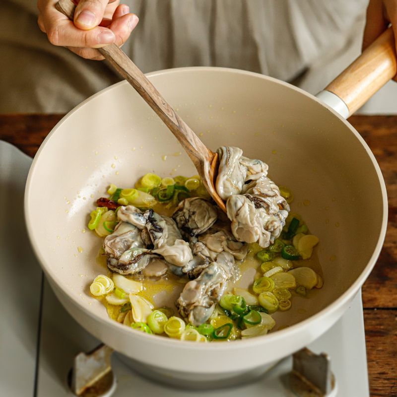 📝TIP 1. 굴을 넣고 볶다가 화이트 와인을 넣고 강불에 빠르게 볶아 알콜은 날리고 향만 남겨 주세요. 📝TIP 2. 신선한 딜과 레몬 제스트를 얹어 상쾌한 마무리를 해주면 좋아요.