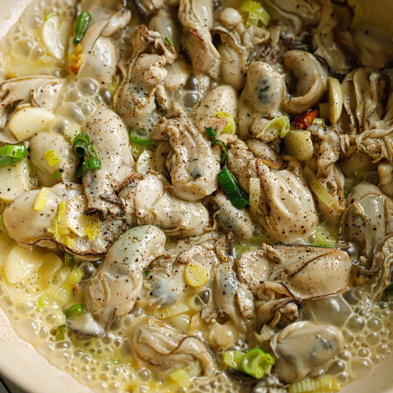 취향에 맞게 생노른자나 생강을 올려 곁들이면 더 맛있고 근사하게 완성할 수 있답니다. 📝TIP 1. 굴에 밀가루를 묻히지 않고 조리하면 훨씬 담백하고 촉촉한 식감으로 만들 수 있어요. 📝TIP 2. 기호에 따라 마지막에 버터 한 조각을 올려 진하고 고소한 풍미를 더해도 좋아요.