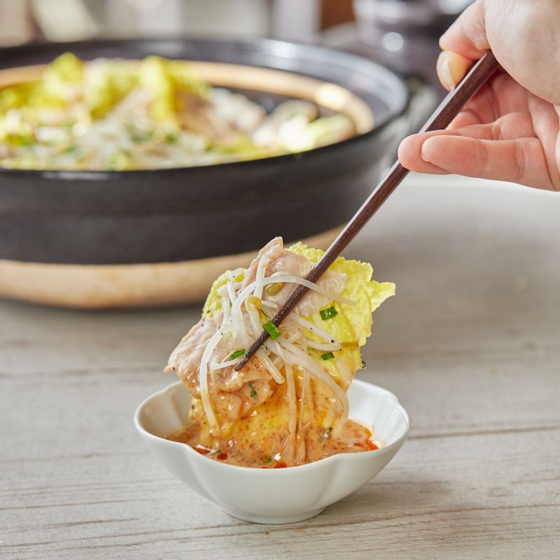취향에 따라 유자 간장소스나 매콤 고소한 깨 소스를 만들어 함께 즐겨보세요! 📝TIP 1. 냉동 삼겹살은 냉장에서 완전히 해동 후 사용해야 고기 잡내가 나지 않아요. 📝TIP 2. 화이트 와인 대신 청주를 사용해 만들어도 좋아요. 📝TIP 3. 기호에 따라 버섯을 추가해 끓여도 정말 맛있어요.