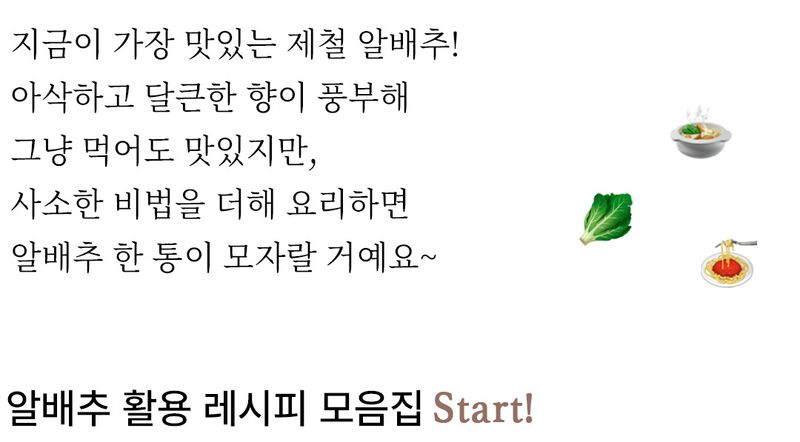 제철을 맞아 달콤한 알배추로 만드는 초간단 파스타! 최소한의 양념으로 깔끔한 감칠맛을 내 알배추 본연의 식감과 맛을 잘 느낄 수 있는 요리예요.