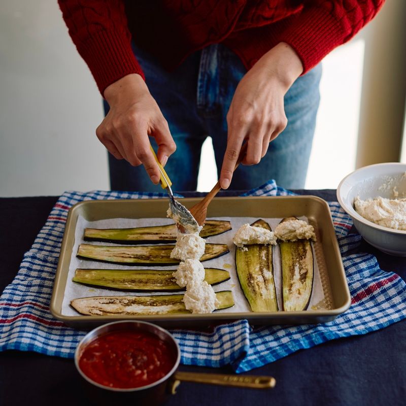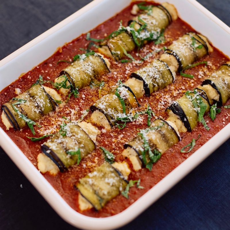 부드럽고 담백한 두부와 고소한 풍미가 가득한 리코타 치즈를 가지 속에 돌돌 말아낸 두부 리코타 가지롤! 새콤달콤한 토마토소스와 찰떡궁합을 자랑해 술과 함께 곁들여 먹기 정말 좋아요.