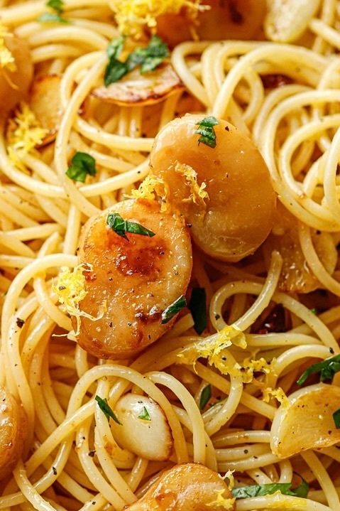 쫄깃 탱글한 관자를 집에서도 맛있게 즐길 수 있는 관자 파스타! 근사한 홈레스토랑 분위기를 완성해 주는 레시피예요. 노릇하게 구워낸 관자에 마늘과 레몬, 그리고 올리브오일로 고급스러운 풍미를 더해 향이 깊은 와인과 참 잘 어울린답니다.