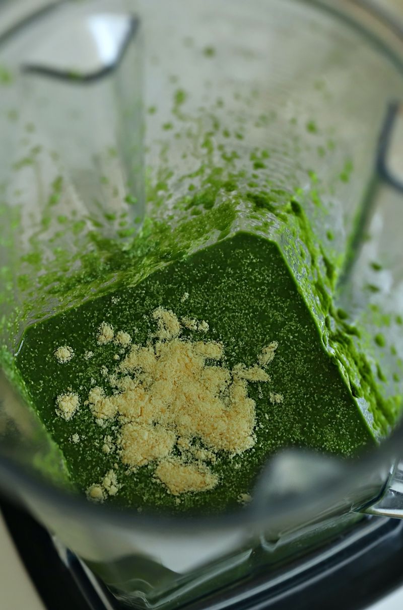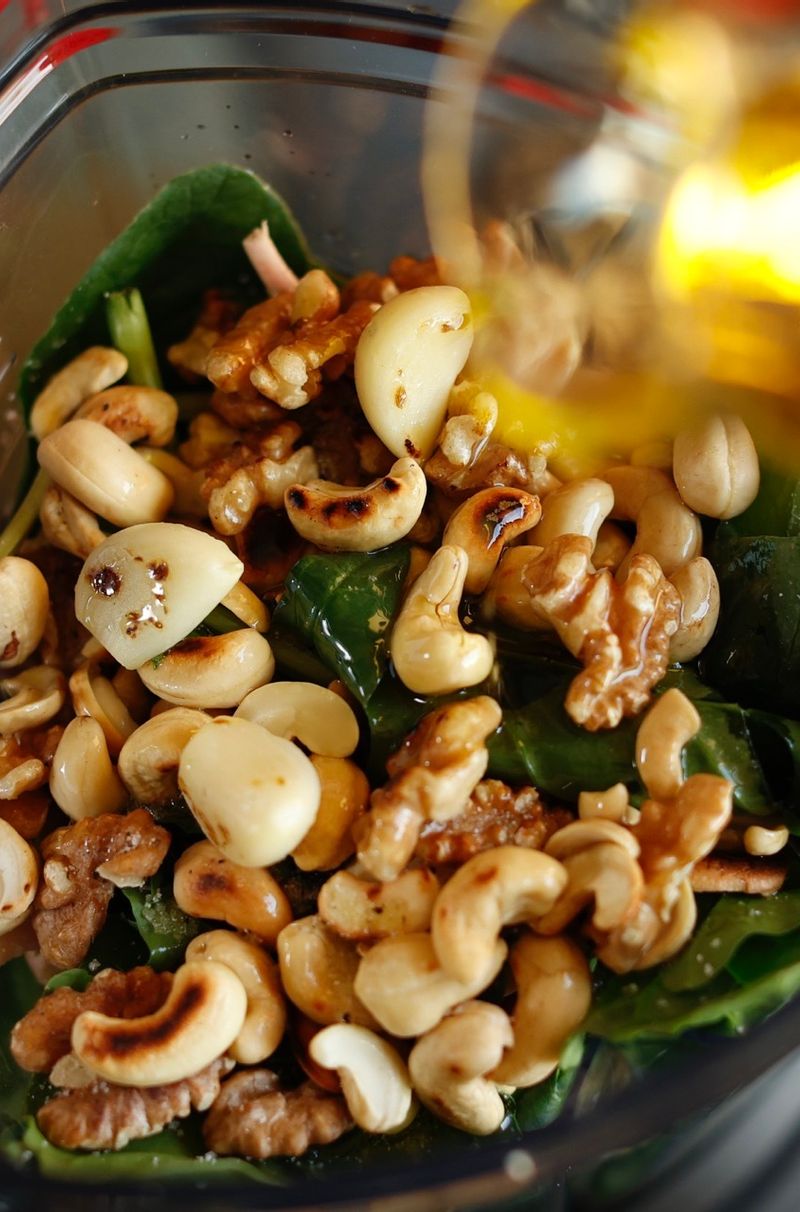 시금치의 진한 풍미를 한껏 끌어올려주는 시금치 페스토로 파스타를 완성했어요. 채식 요리임에도 구운 캐슈넛과 호두로 진한 감칠맛을 챙겼답니다.