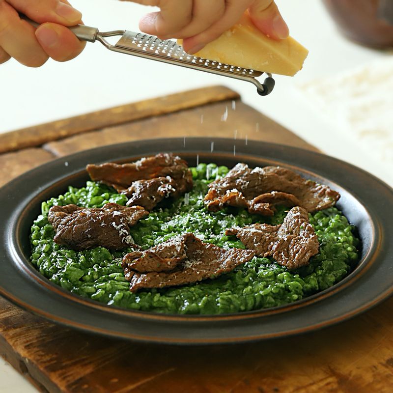 📝TIP 1. 구운 소고기 몇 점은 따로 두어 리조또 위 플레이팅으로 활용해도 좋아요. 📝TIP 2. 진한 풍미를 느끼고 싶다면 바질 페스토를 추가해 만들어도 맛있어요.