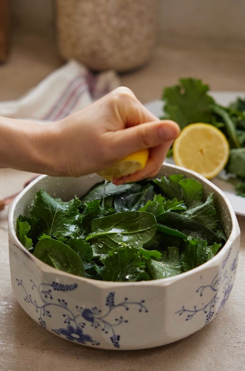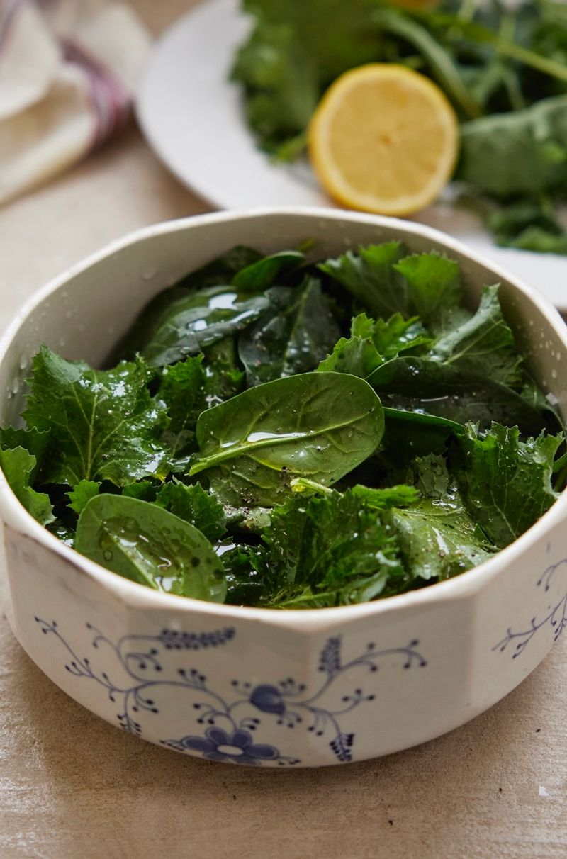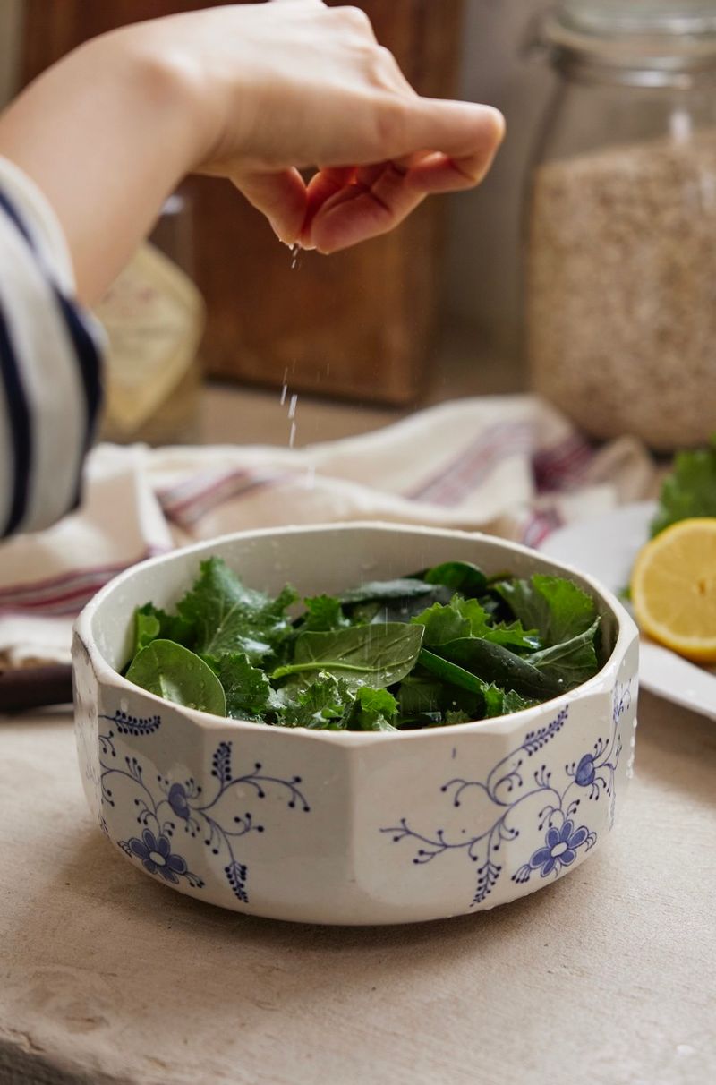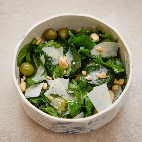 시금치의 어린잎을 사용해 식탁 위에 싱그러움을 담아보세요! 📝TIP 1. 파마산 치즈를 갈지 않고 그레이터로 얇게 슬라이스해 올리면 훨씬 깔끔한 맛으로 즐길 수 있어요. 📝TIP 2. 취향에 따라 호두나 아몬드 등 다양한 견과류를 곁들여도 좋아요.