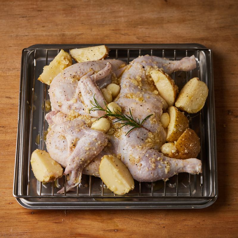 📝TIP 1. 닭 위에 로즈마리를 하나 올려 구워주면 잡내를 방지할 수 있어요. 📝TIP 2. 버터에 다진 마늘을 볶은 후 그 위에 누룽지를 만들어주면 훨씬 맛있어요.